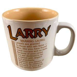 Features the name LARRY printed in a large font at the top of the front side of the mug. Directly underneath this is a poem about the name LARRY.