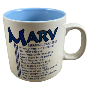 Features the name MARV printed in a large font at the top of the front side of the mug.