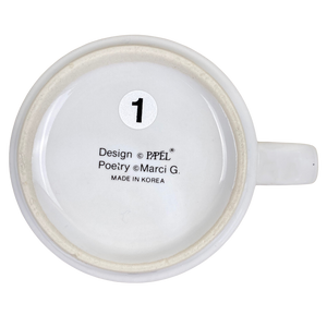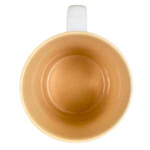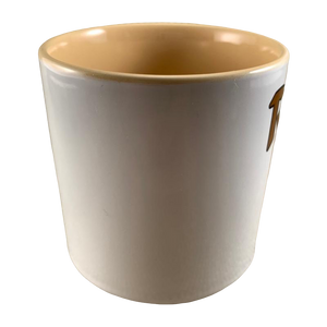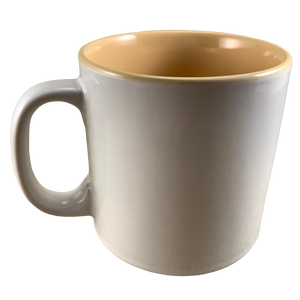 Copy 1: This mug has no chips, cracks, scratches, stains or crazing. There is a small manufacturing imperfection on the front upper surface above the letter Y. It's a small spot where the white paint did not cover resulting in a small circular area which is concave. Please see the 1st photo.