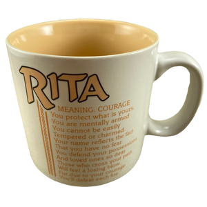 Features the name RITA printed in a large font at the top of the front side of the mug.