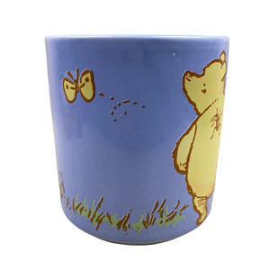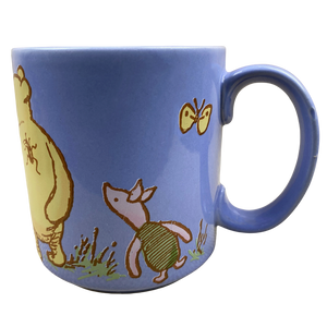 Features Pooh, Tigger, and Piglet on its exterior surface. There are butterflies in the air and a spider on Pooh's back.