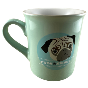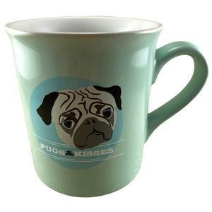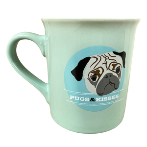 Features the same artwork on its front and rear surface consisting of an image of a pug dog.