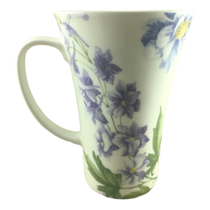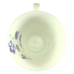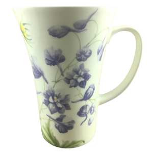 There is a matching purple flower inside this mug on its rear upper surface.