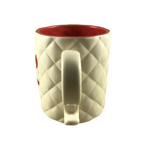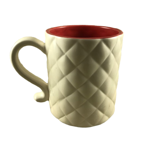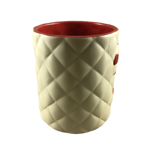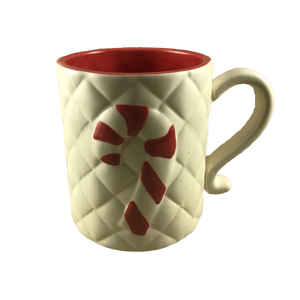 The exterior has a quilted cloth appearance with an embossed striped candy cane on one side.