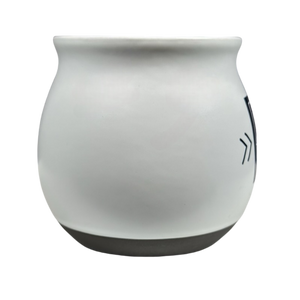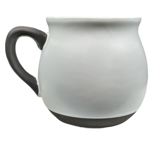 There is a band of gray trim wrapping around the base on the exterior, the handle is finished in a matching gray color.