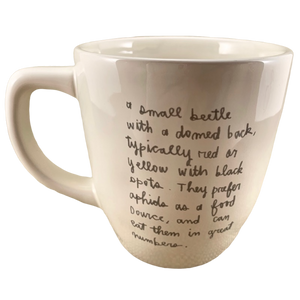 Printed on the rear surface in a cursive font is the following paragraph about ladybugs: