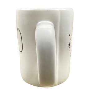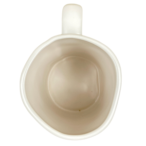 Copy 1: This mug is new. This mug has no chips, cracks, scratches, stains or crazing. There is a manufacturing imperfection on the side of the handle where the glaze is absent in a small spot, please see the red arrow pointing to this in the last photo. There is a dark dot on the interior surface and another much smaller one, please see the 5th photo.