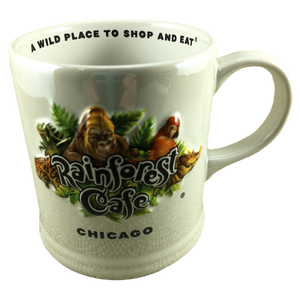 Embossed artwork on the front surface depicts the Rainforest Cafe logo surrounded by several animals.