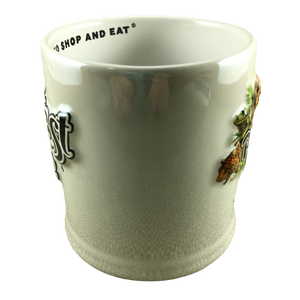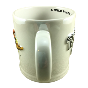 Inside this mug on its rear upper surface is printed "A WILD PLACE TO SHOP AND EAT."