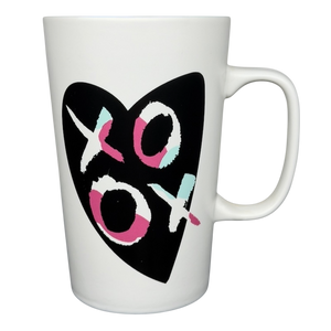 This stylish Starbucks tall ceramic mug brings a bold and expressive look to your daily routine with its eye-catching “XOXO” design. The front features a large black heart filled with handwritten-style X’s and O’s in a layered palette of white, teal, and pink, giving it a modern, artistic feel. The matte white exterior contrasts beautifully with the glossy, soft mint-green interior, creating a fresh and vibrant aesthetic from top to bottom. The elongated shape provides a sleek silhouette, complemented by a comfortable full-size handle, while the STARBUCKS® logo printed vertically on the side confirms its authentic origin.