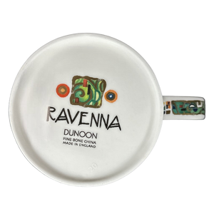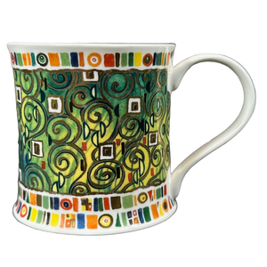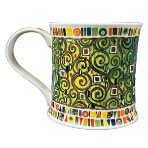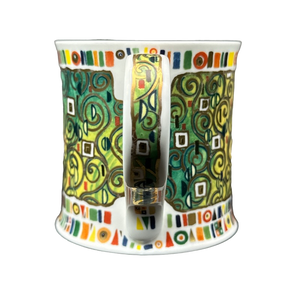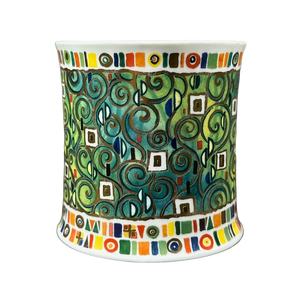 Features gorgeous abstract artwork wrapping around its exterior surface and on the handle.