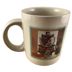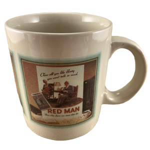 This is a very rare mug that features 3 advertisements for Red Man chewing tobacco.