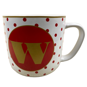Has the letter "W" printed in a gold font on a red circular background in the middle of the front surface.