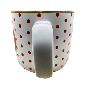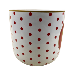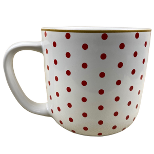 Features a red polka dot pattern wrapping around its exterior surface.