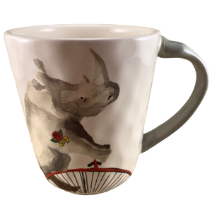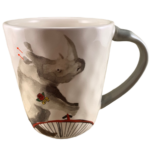 Features a dimpled exterior surface with an image of a rhinoceros on a unicycle on its front surface.