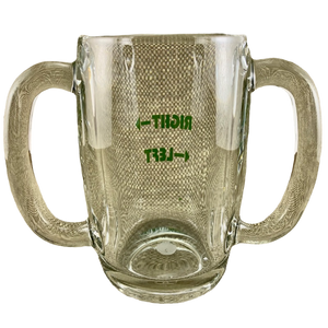This is a heavy glass mug with double handles.