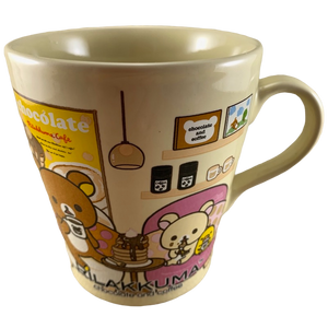 Features Rilakkuma, Korilakkuma, and Kiiroitori drinking coffee on its front surface.