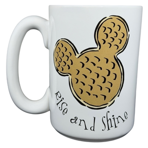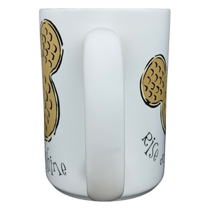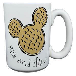 This cheerful Disney mug features a playful Mickey-shaped waffle illustration in warm golden tones paired with the uplifting phrase “Rise and Shine,” creating a cozy breakfast-inspired design that feels fun and inviting. The clean white exterior keeps the artwork crisp and charming, while the glossy soft blue interior adds a soothing pop of color that’s revealed with every sip. Finished with a comfortable curved handle and a Disney bottom mark, this mug is a delightful everyday piece that brings a little Disney magic to morning coffee or tea.