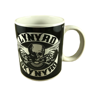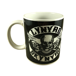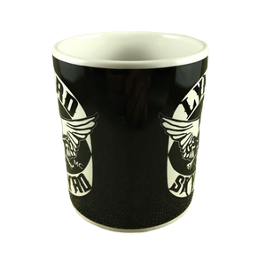 Features identical artwork on both sides that depicts a skull with crossbones in its mouth and wings behind it.