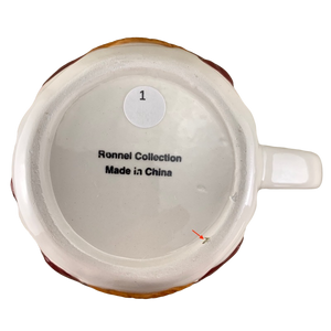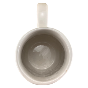 Copy 1: This mug has no cracks, scratches, stains or crazing. There is a small black mark on the bottom surface, please see the red arrow pointing to this in the 6th photo. There are 2 small white nicks on the front surface, please see the white arrows pointing to these in the last photo.