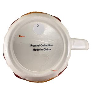 Copy 2: This mug has no cracks, scratches, stains or crazing. There is a small black mark and a larger red mark on the bottom surface, please see the red arrows pointing to these in the last photo.