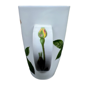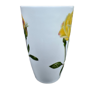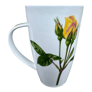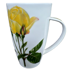 This glorious tall mug features yellow roses on its front and rear surface and on the handle.