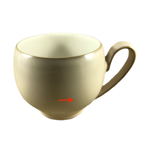 Copy 1: This mug has no chips, cracks, scratches, stains or crazing. The printing on the bottom of the mug is slightly faded. Please see the last photo. There is a small black mark on the front surface, please see the 1st photo where a red arrow is pointing to this imperfection.