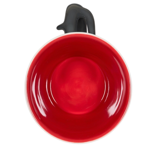 This mug features Rudolph's head lightly embossed on its front surface and under the handle.