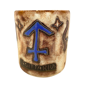 Features beautiful lightly embossed artwork depicting Sagittarius on its exterior surface.