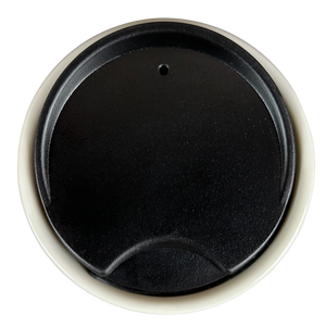 Includes a black plastic lid with a rotating mechanism to open and close it.