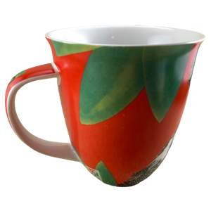 This awesome larger than average mug features whimsical artwork wrapping around its exterior surface and on the handle consisting of a panda and its child among leaves.