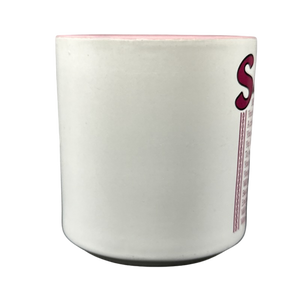 There is a dark mark on the lower surface near the edge just beneath the handle. I believe it may be a spot where the paint is absent, it's difficult to tell. Please see the last photo where a red arrow is pointing to this. It's also partially visible in the 5th photo.