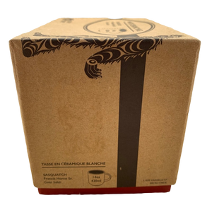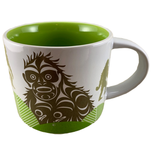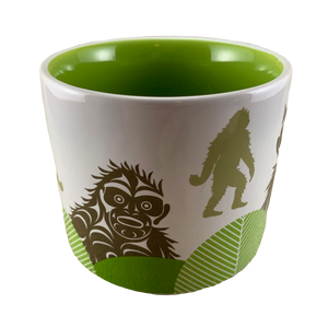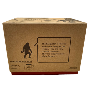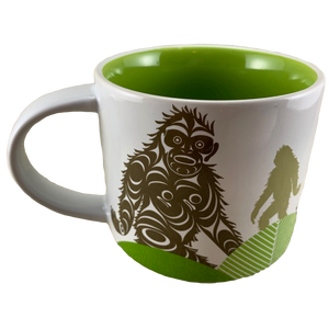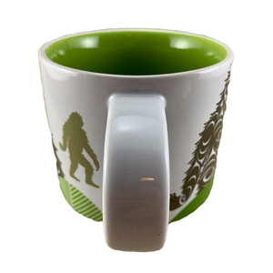 This mug features multiple images of Sasquatch wrapping around its exterior surface.