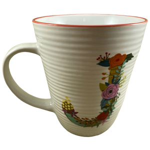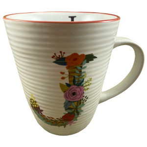 This beautiful mug features the letter "J" printed in a flower font on its front and rear surface.