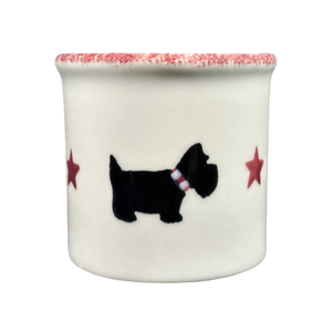 Features Scottie dogs and stars wrapping around its exterior surface.
