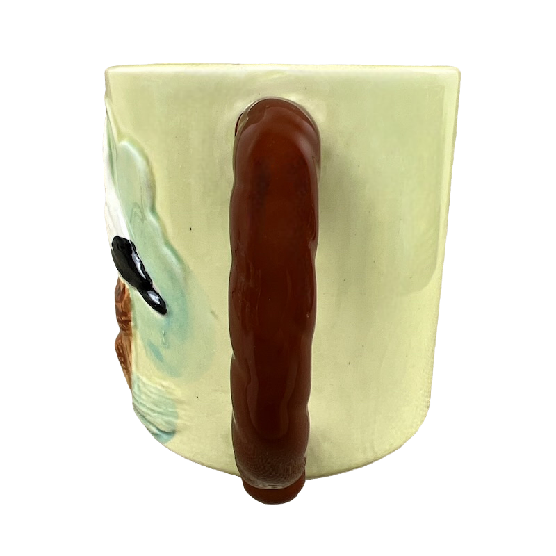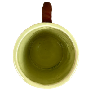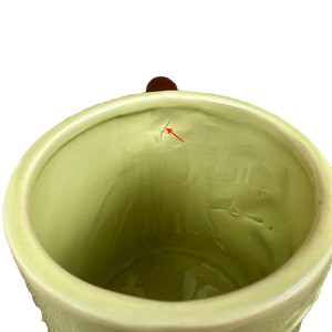 There is a small crack on the interior surface just behind where the upper part of the handle attaches on the exterior surface. It does not extend through to the exterior, please see the red arrow pointing to this in the last photo.