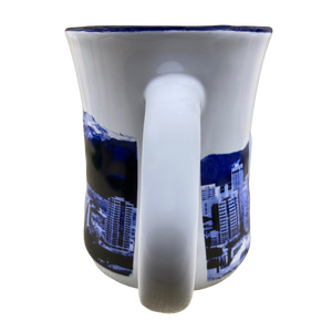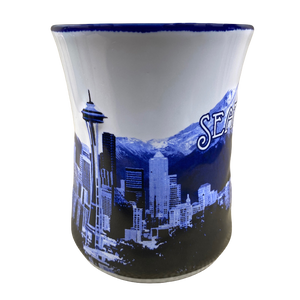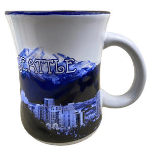 Features artwork wrapping around its exterior surface consisting of the Seattle Skyline with embossed accents.