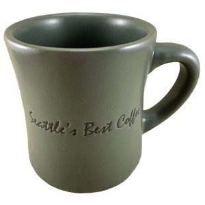 This is a diner style mug with "Seattle's Best Coffee" etched into its front surface in a contrasting dark cursive font.
