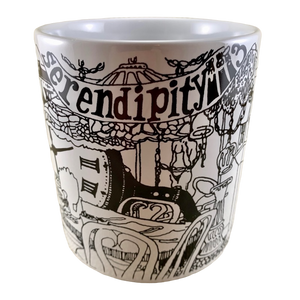 This is a rare black and white mug from Serendipity 3.