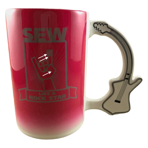 Features a hand showing the rock out symbol with a thimble on its index finger on the front surface.