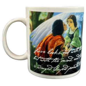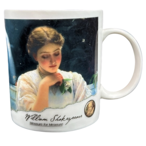 Features artwork wrapping around its exterior surface and on the handle depicting a scene inspired by Measure for Measure by William Shakespeare.
