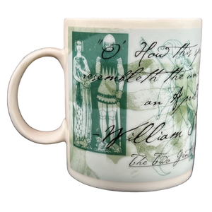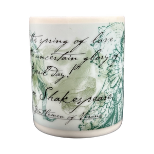 Features artwork wrapping around its exterior surface and on the handle depicting a scene inspired by The Two Gentlemen Of Verona by William Shakespeare.
