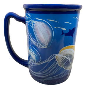 This beautiful mug features embossed jelly fish wrapping around its exterior surface.