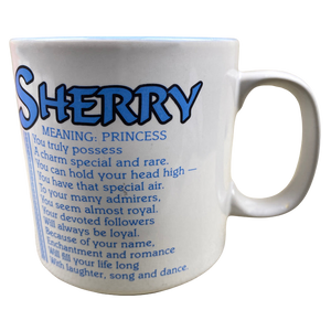 Features the name SHERRY printed in a large font on its front upper surface. Directly underneath this is a poem about the name SHERRY.