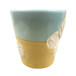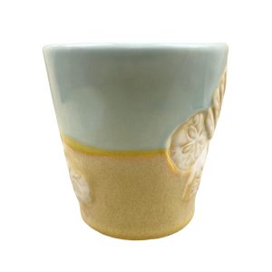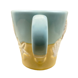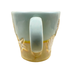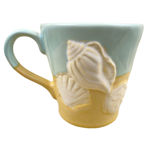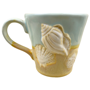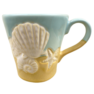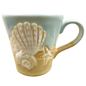 Artwork wrapping around the exterior surface depicts embossed sea shells and a starfish.