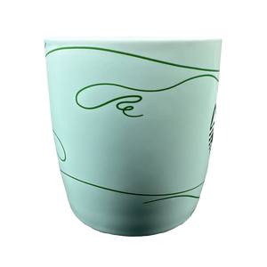 There is an abstract green swirl pattern wrapping around the exterior surface.