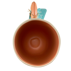 This is a brand new mug with the hang tag still attached to it. It features a unique gently raised ridges design on the exterior surface of this mug.
