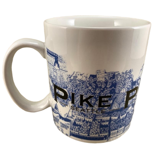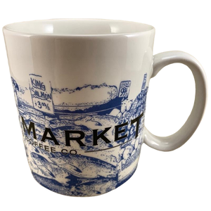 Features images of Pike Place Market Seattle wrapping around its exterior surface.