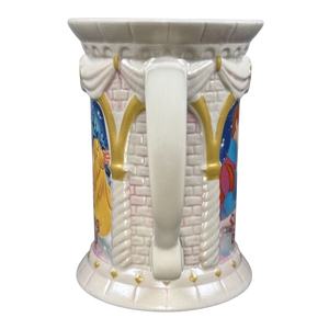 This beautiful mug is shaped like a castle with the same artwork on its front and rear surface consisting of Sleeping Beauty and Prince Charming.