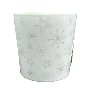 Features an embossed Christmas tree on the front surface and scattered snowflakes wrapping around its exterior surface.